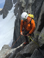 Any ways that didn't happen. We tried two different routes to reach the summit but both routes were a no go so we decided to retreat. This is where things began to really spice up. We were a total of 5 folks and we needed to descend around 10 pitches of 60m to reach the bergschrund and then tackle it.